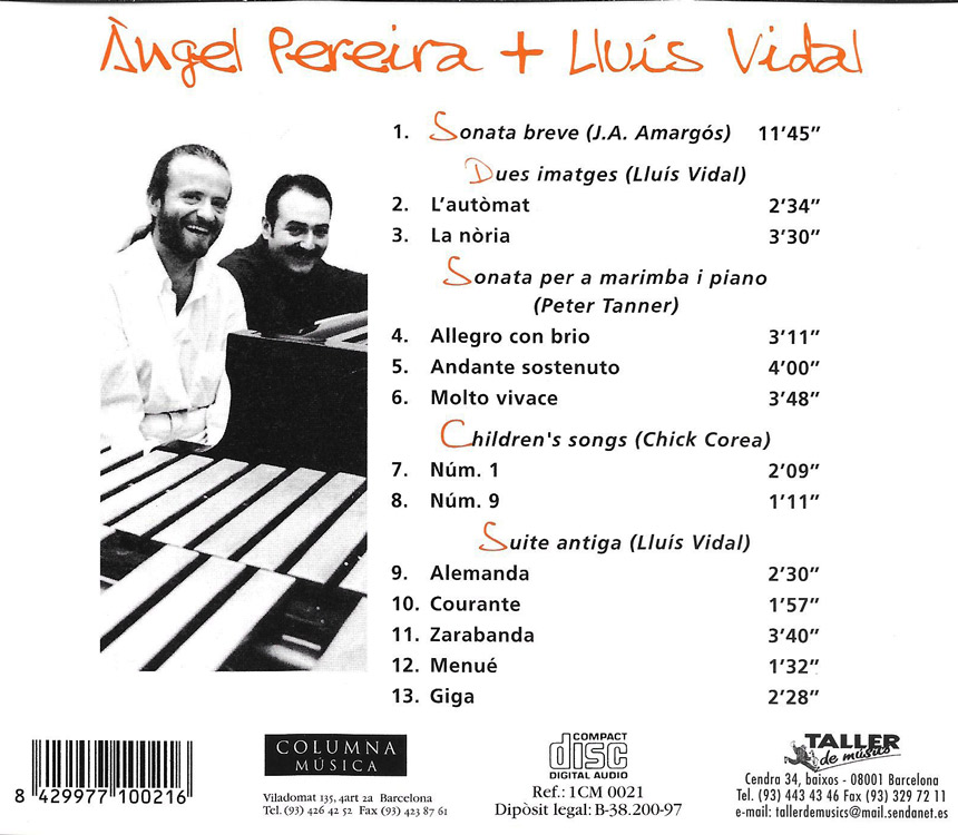 Intèrprets: Lluís Vidal (piano), Àngel Pereira (vibràfon, xilòfon, marimba)