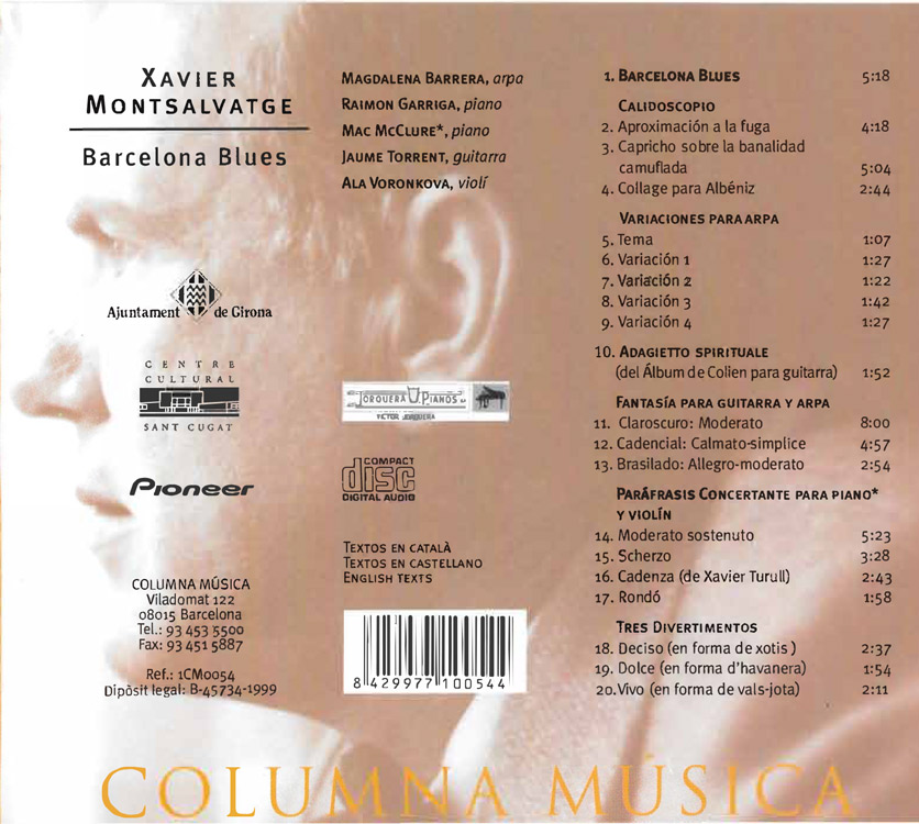Intèrprets: M. Barrera – arpa, R. Garriga i Mac McClure – piano, J. Torrent – guitarra, A. Voronkova – violí,