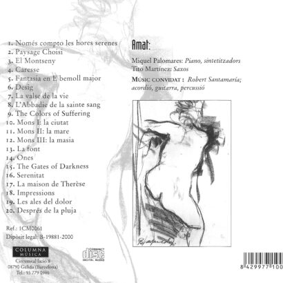 Caresse és un projecte sonor singular del compositor Amat, on conflueixen instruments acústics i electrònics per crear una atmosfera musical íntima i contemporània. Amb una instrumentació que inclou piano, sintetitzador, saxo, acordió, guitarra i percussió, aquesta obra evoca textures delicades i envoltants. El disc compta amb la col·laboració d’intèrprets versàtils com M. Palomares, T. Martínez i R. Santamaría, oferint un viatge musical emocional i experimental.