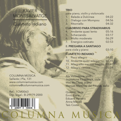 El disc Cuarteto indiano presenta una de les obres més representatives de cambra del compositor Xavier Montsalvatge, on conflueixen influències del nacionalisme musical, el neoclassicisme i els ritmes antillans. Aquest enregistrament captura la riquesa melòdica i la subtilesa rítmica de Montsalvatge en una obra de maduresa plena.