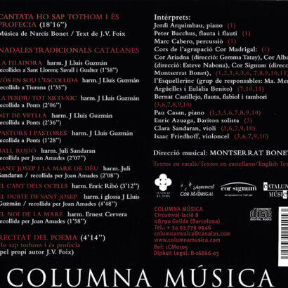 Ho sap tothom i és profecia, obra del compositor català Narcís Bonet, hereva de la millor tradició musical catalana del segle XX. Amb una combinació de lirisme, espiritualitat i sofisticació harmònica, la peça reflecteix l’essència nadalenca des d’una mirada poètica i contemporània.