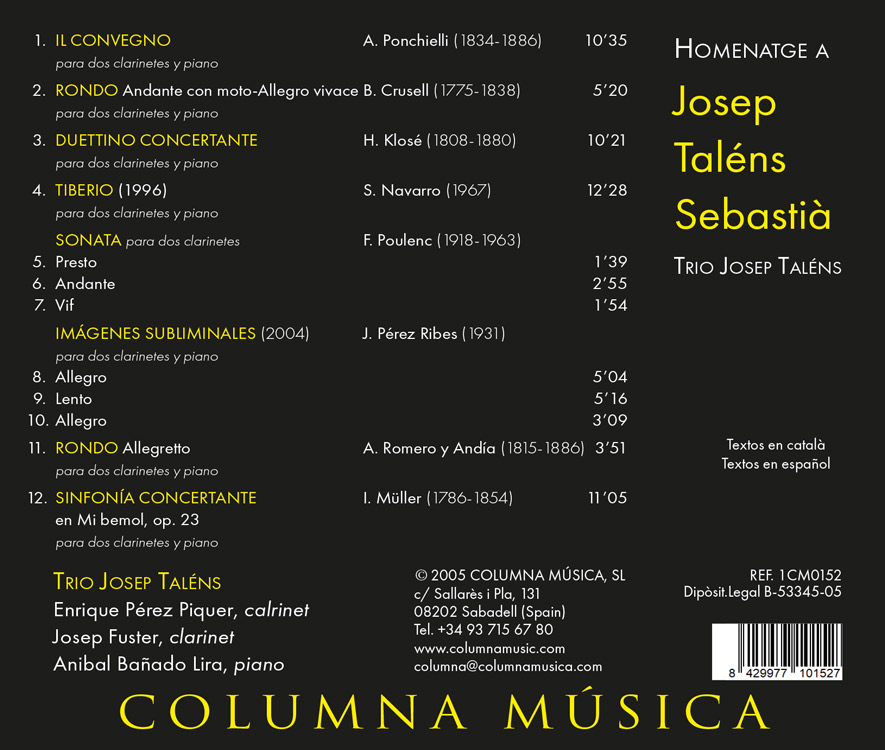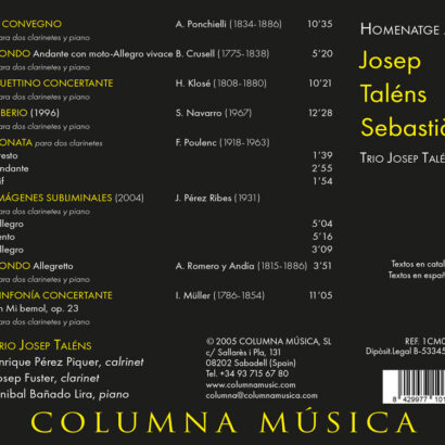 Intèrprets: Enrique Pérz Piquer i Josep Fuster – clarinets, Anibal Bañado Lira – piano