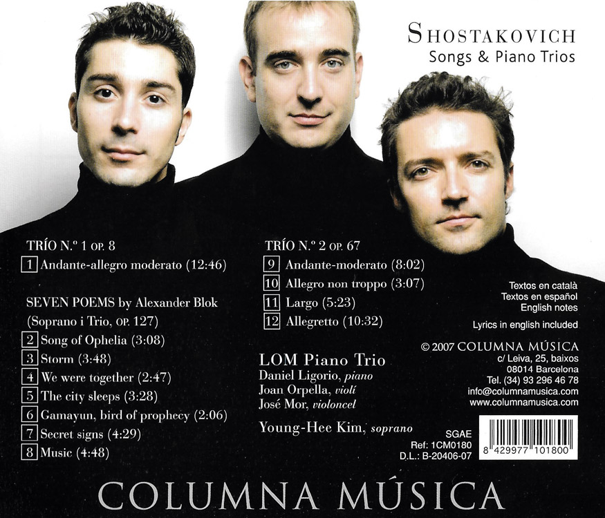 Una immersió en el món intens i expressiu del compositor rus Dmitri Shostakovich, a través d’una selecció de cançons i trios amb piano que reflecteixen la seva profunditat emocional, crítica social i riquesa harmònica. Interpretat amb gran sensibilitat pel reconegut LOM Piano Trio, aquest enregistrament posa en relleu tant la vessant més íntima com la més vigorosa de l’autor.