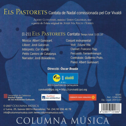 Intèrprets: Cor Vivaldi (Petits Cantors de Catalunya), Òscar Boada (dir.), Jordi Boixaderas (narrador), Conjunt instrumental (E. Vila, F. Puig, F. Armengol, G. Prats, A. Guinovart)